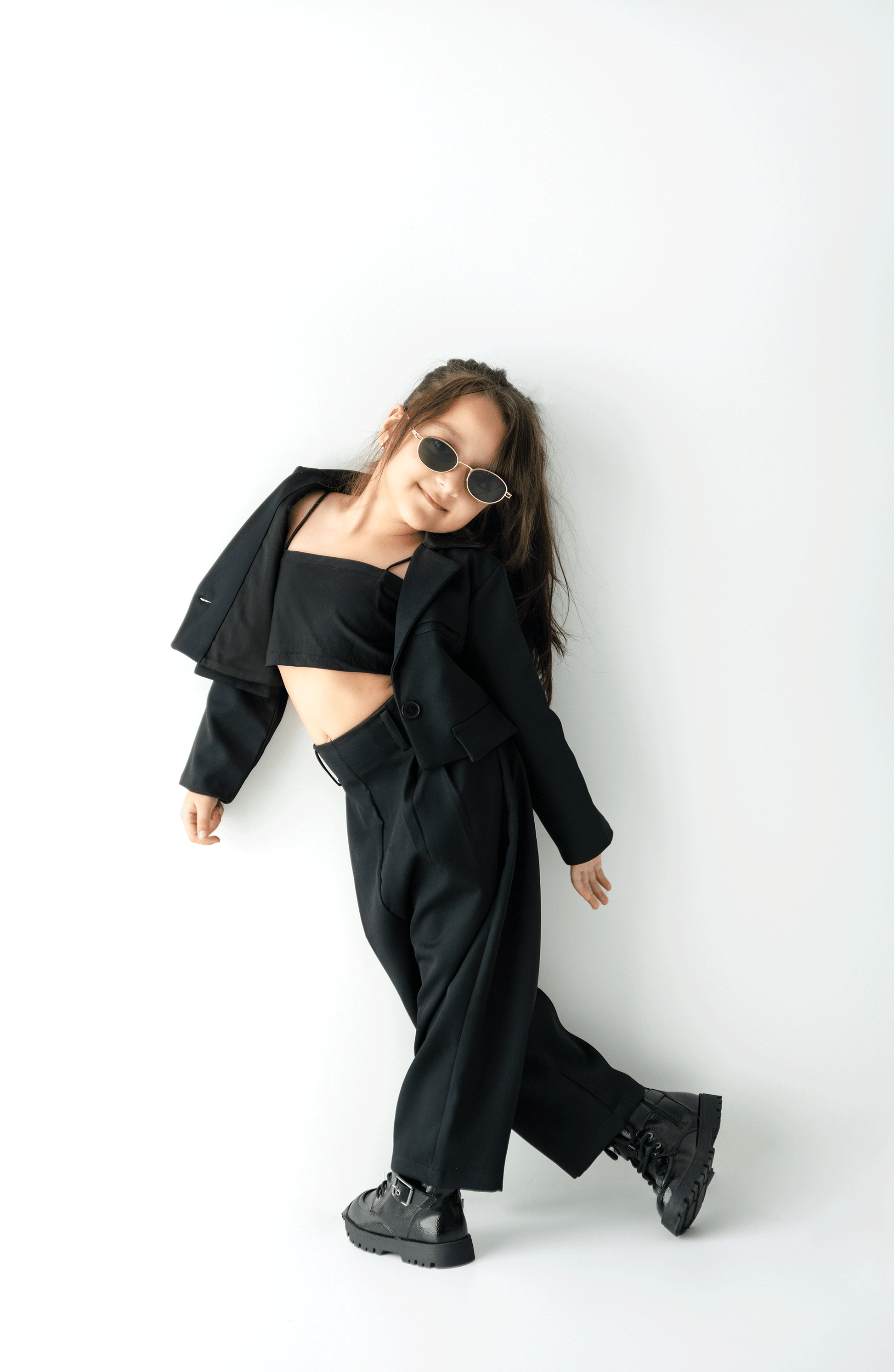 Our black pants, crafted from premium exported crepe fabric, offer a soft and comfortable fit for all-day wear. The luxurious fabric ensures both durability and a smooth feel, making these pants a wardrobe essential. Pair them with our Lyla cropped blazer to complete a sophisticated, polished look that effortlessly transitions from day to night. Perfect for both casual and formal occasions.
