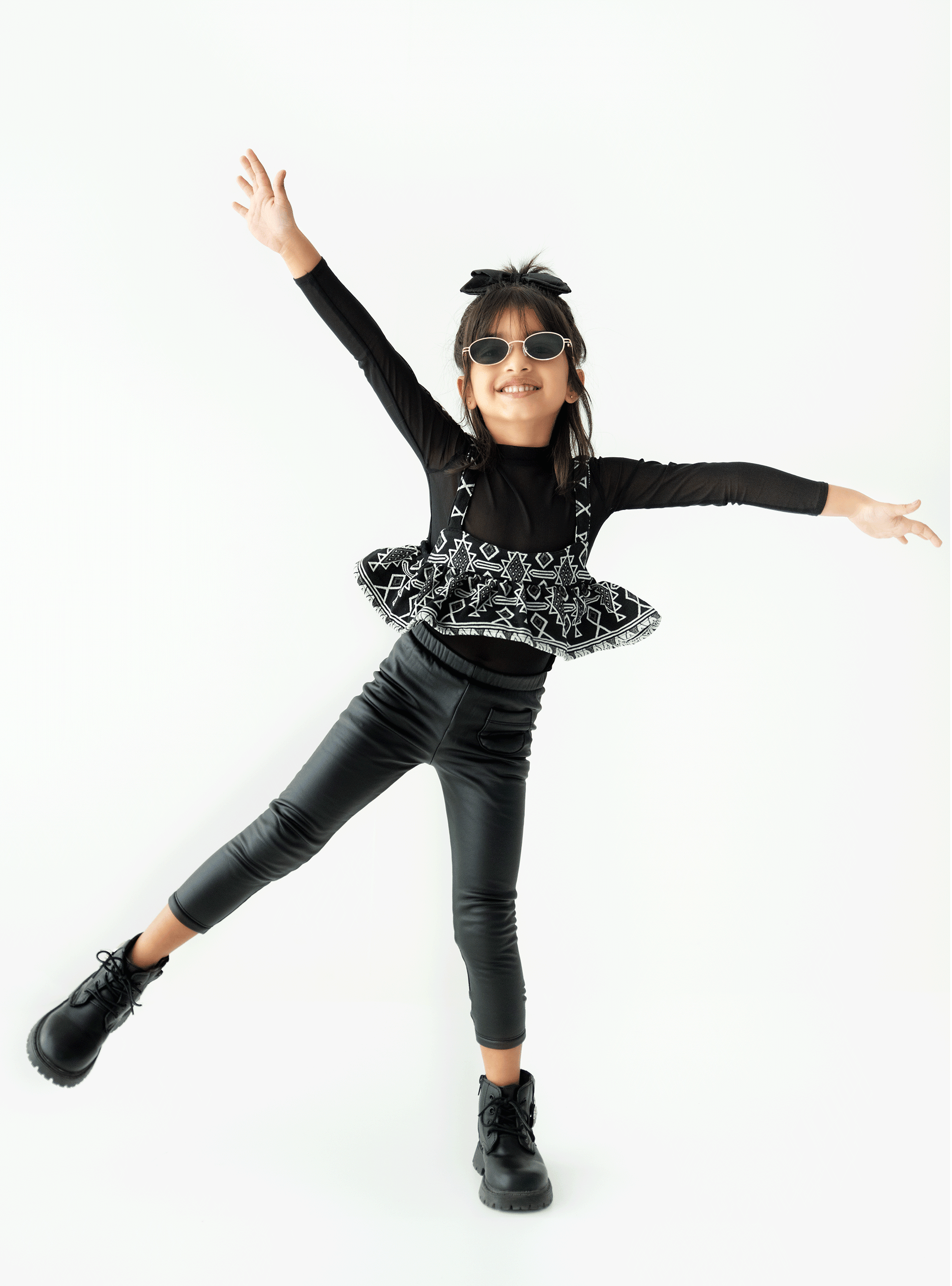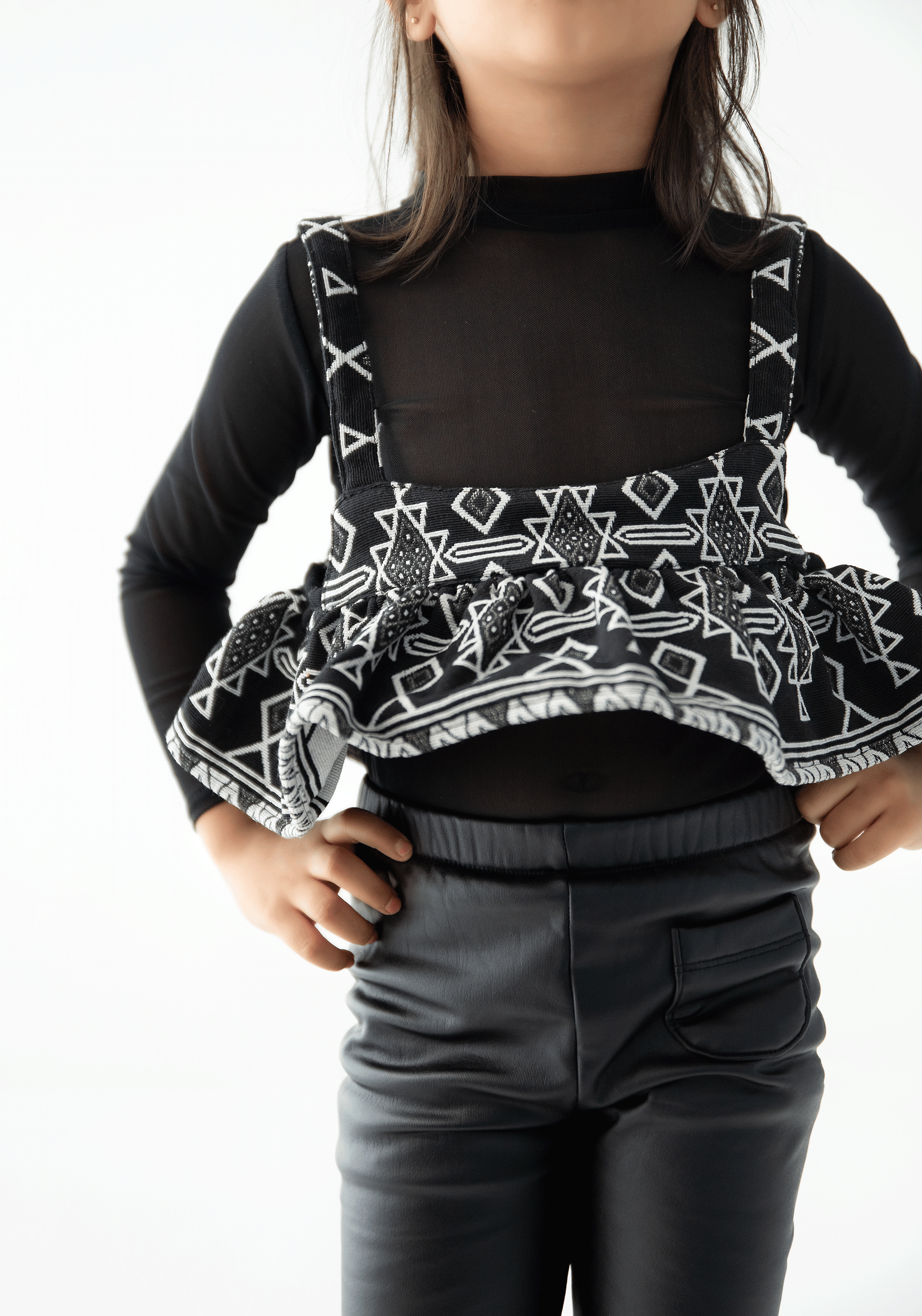 The Cora peplum top is a standout piece for your kid's wardrobe, featuring a flared silhouette that adds a fashionable edge. This versatile top is perfect for layering with cardigans or jackets, making it suitable for various seasons.