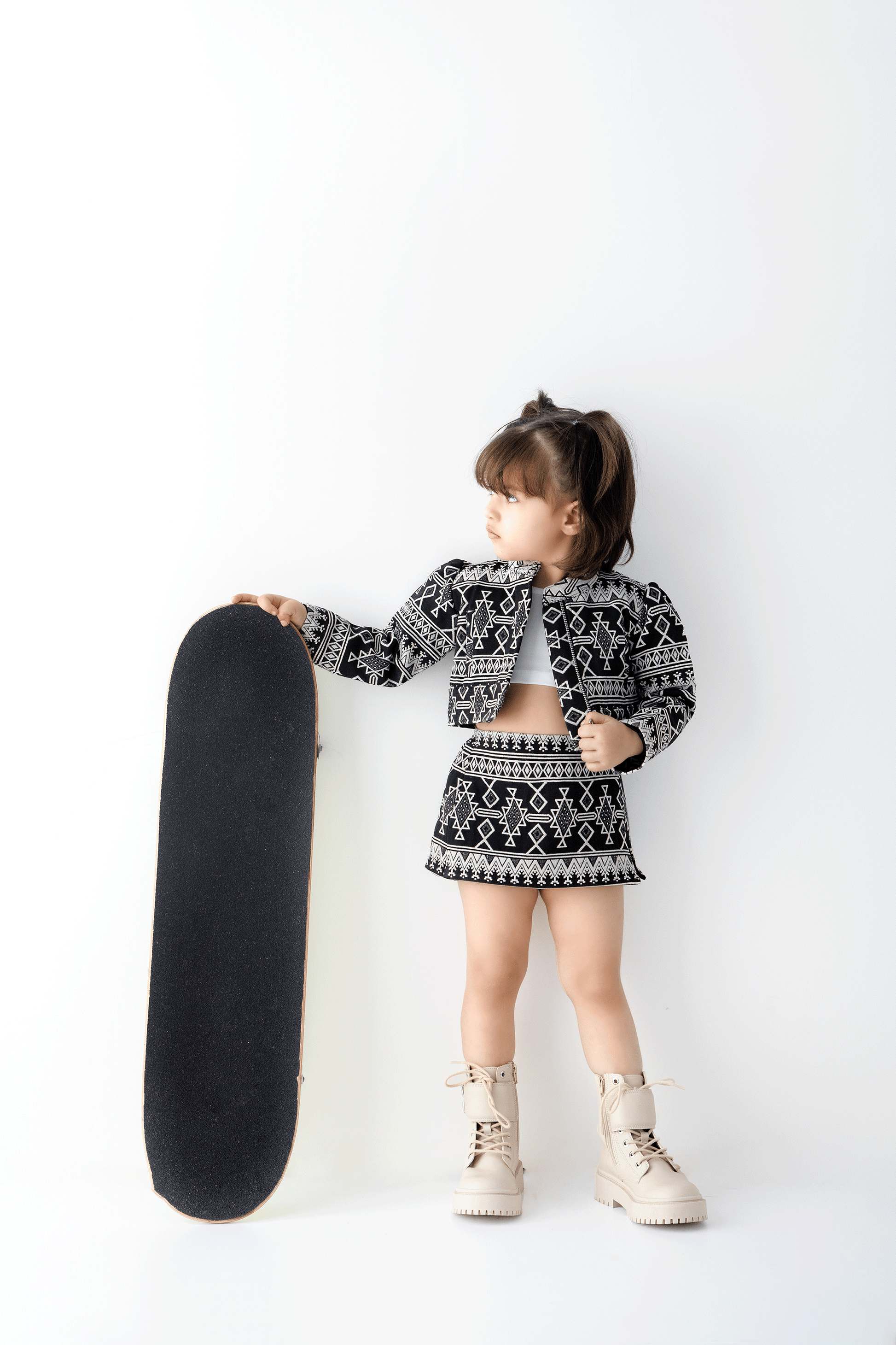 Elevate your style with this chic jacket and skirt set, featuring a sophisticated jacquard geometric print for a refined look. The soft cotton lining ensures ultimate comfort, making this ensemble cozy yet glamorous. Perfect for any occasion, this set will have you feeling confident and stylish.