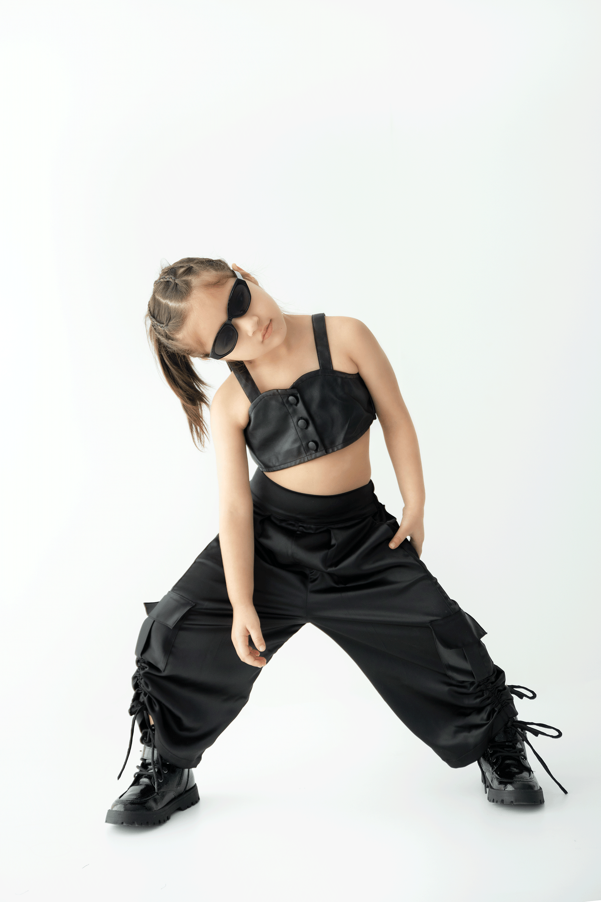 The Luna Cargo Pant, made from soft and shining satin fabric, offers both comfort and a chic look for your kid. Pair it with a messy top and bomber jacket for a stylish, trendy outfit that's perfect for any casual outing.